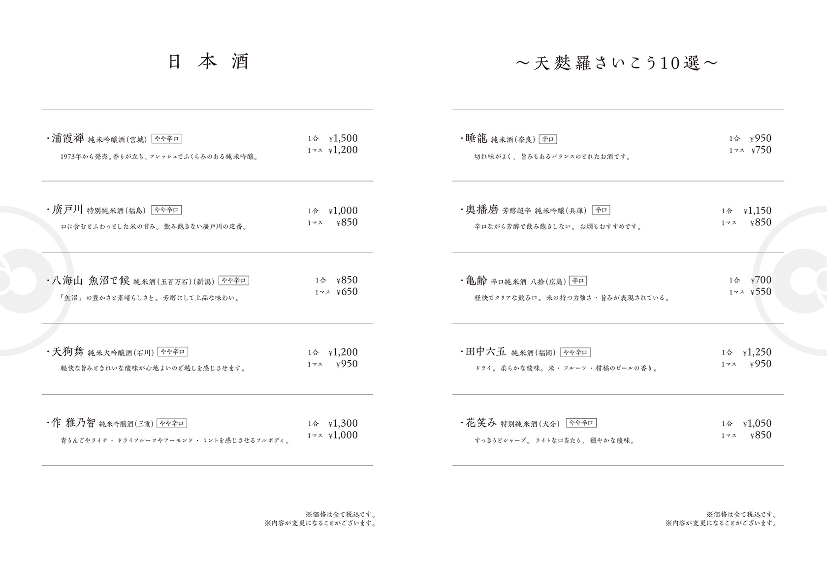 やや辛口 1合¥1,200 - 天狗舞 純米大吟醸酒(石川)